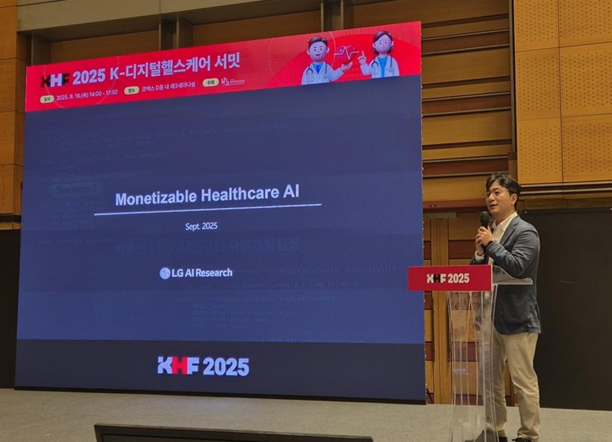LG AI연구원 박용민 AI사업팀장은 18일 서울 코엑스에서 열린 KHF 2025 디지털헬스케어 서밋에서 ‘돈이 되는 의료 인공지능’을 주제로 발표에 나섰다.