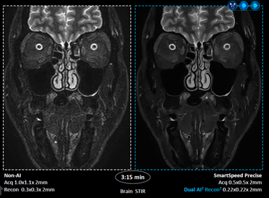 이러한 변화의 흐름에 맞춰 필립스는 자사가 오랜 기간 축적한 MR 분야의 경험을 바탕으로 기존 자사의 재구성 플랫폼에 듀얼 AI 알고리즘을 적용해 검사 속도와 영상 품질 향상에 기여할 수 있는 신기술을 선보였다.