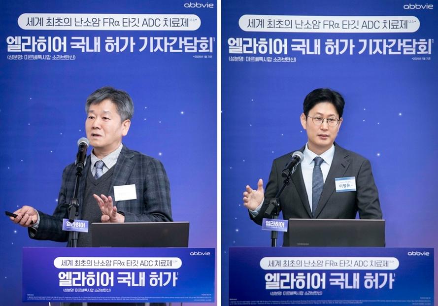 또한 그는 "엘라히어는 FRα 수용체에 선택적으로 결합해 세포독성 물질을 암세포 내부로 전달하고 주변 암세포까지 제거하는 기전을 기반으로 강력한 항암 효과를 발휘하는 ADC 치료제다"면서 "바이오마커 기반의 치료 전략이 적용되는 만큼 향후 더 정교한 환자 맞춤 치료가 가능해질 것으로 예상한다. 기존 치료제의 한계를 넘어선 엘라히어의 임상 혜택을 통해 국내 백금저항성난소암 환자의 생존 개선에도 기여할 것으로 기대한다"고 강조했다.