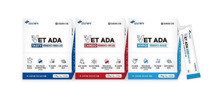 경보제약 관계자는 "기호성과 급여 편의성이 높아 소비자 만족도가 높은 벳에이다가 이번 3종 출시로 제품 선택의 폭이 더욱 넓어졌다"며 "동물병원 전용 제품으로 반려동물의 개별 건강 상태에 맞는 맞춤형 급여가 이뤄질 것으로 기대한다"고 말했다.