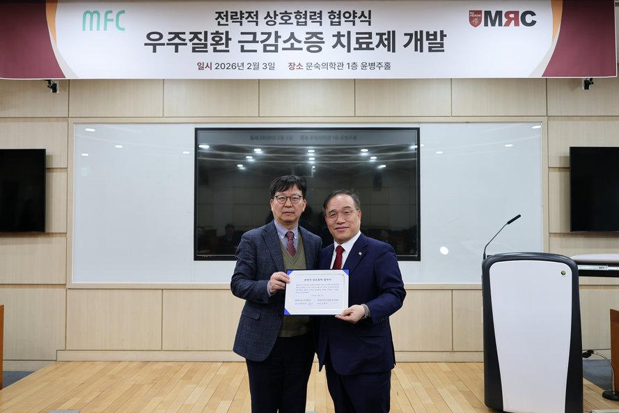 고려의대 MRC 선도연구센터, 엠에프씨와 우주인 근감소증 치료제 공동개발 MOU 체결