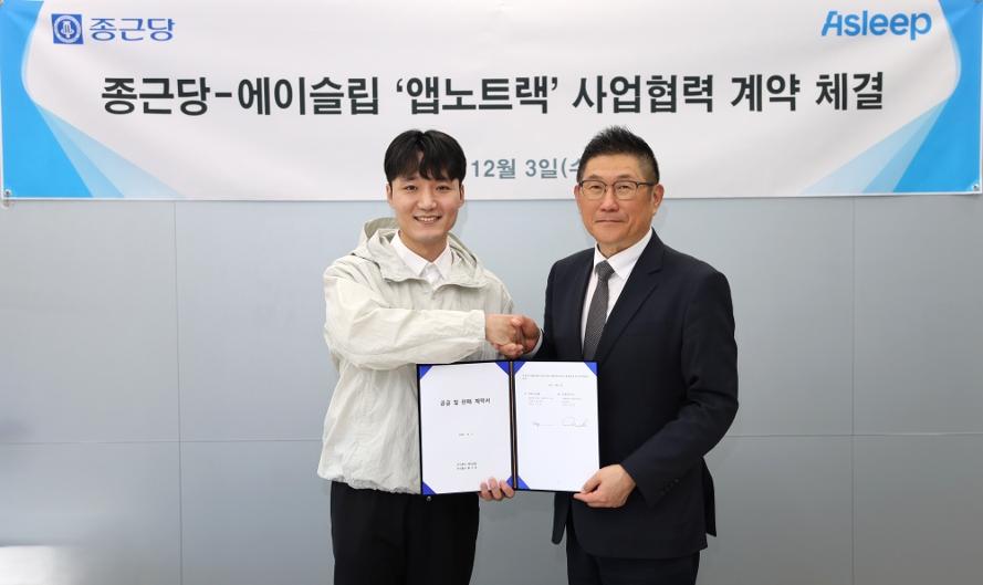 [메디게이트뉴스 이지원 기자] 종근당은 서울 충정로 본사에서 슬립테크 기업 에이슬립과 수면무호흡증 디지털 진단보조기기 '앱노트랙(Apnotrack)'의 국내 공동판매 계약을 체결했다고 4일 밝혔다.