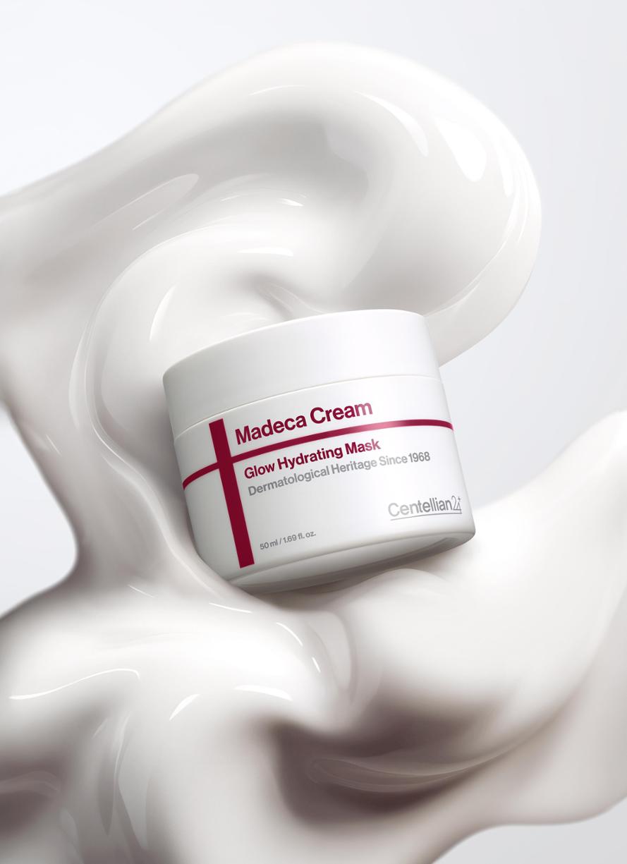 마데카 크림 글로우 하이드레이팅 마스크는 센텔리안24 '마데카 크림'의 핵심 성분인 TECA(센텔라아시아티카 정량추출물)를 함유한 크림 제형의 리브온 타입 마스크다.