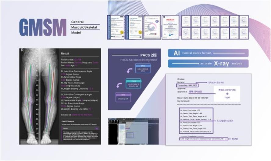 워크원오원(G308)은 근골격계 X-ray 영상 분석에 특화된 AI 디지털 의료기기 기업이다. 주요 제품 ‘GMSM’은 X-ray 영상에서 해부학적 구조를 자동 인식해 각도·길이·정렬 등 정형외과 진단에 필요한 정량 지표를 산출하는 소프트웨어로, PACS와 연동해 촬영 직후 실시간 분석이 가능하다. 판독 결과를 구조화 데이터로 제공해 판독 편차를 줄이고 표준화된 진단을 지원한다.