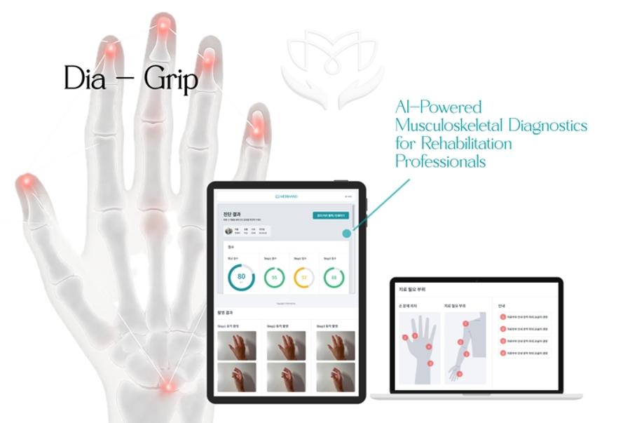 메리핸드(G309)는 손·전완 재활 분야의 평가와 치료 과정을 통합한 솔루션을 개발하는 의료기기 기업이다. 키메스에서는 카메라 기반 손 동작 분석과 개인별 신체 모델링 기술을 활용해 환자 상태를 분석하고 맞춤형 재활 방향 설계를 지원하는 디아그립을 선보인다. 재활 과정의 변화를 지속적으로 기록·관리해 의료진의 의사결정을 돕고, 병원·재활센터·홈케어 환경에서 활용 가능한 것이 특징이다.